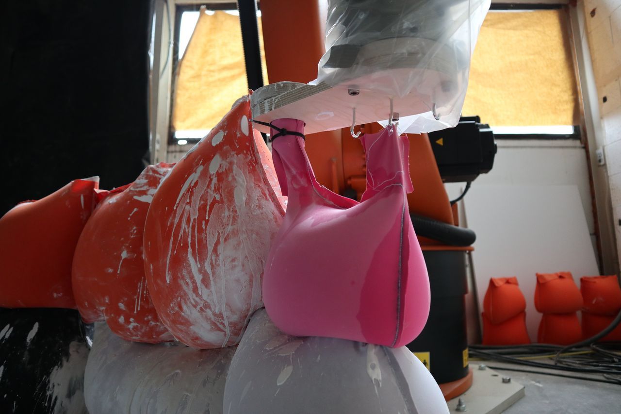 collaborating robotic assembly and the textile forming in the plaster cast on